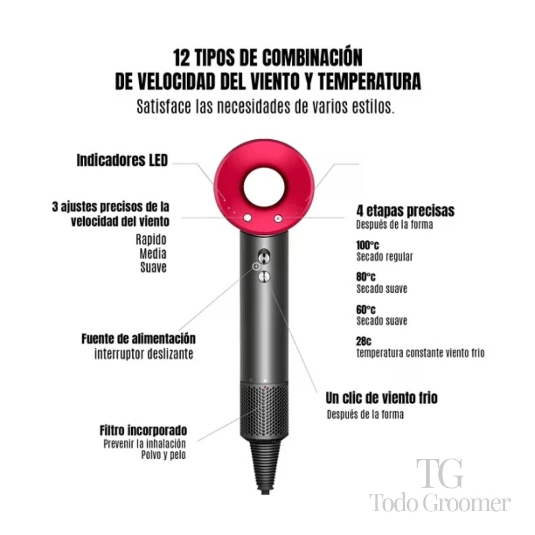 – Diseño estilo Dyson Supersonic: compacto, liviano y ergonómico, con una estética moderna y profesional.