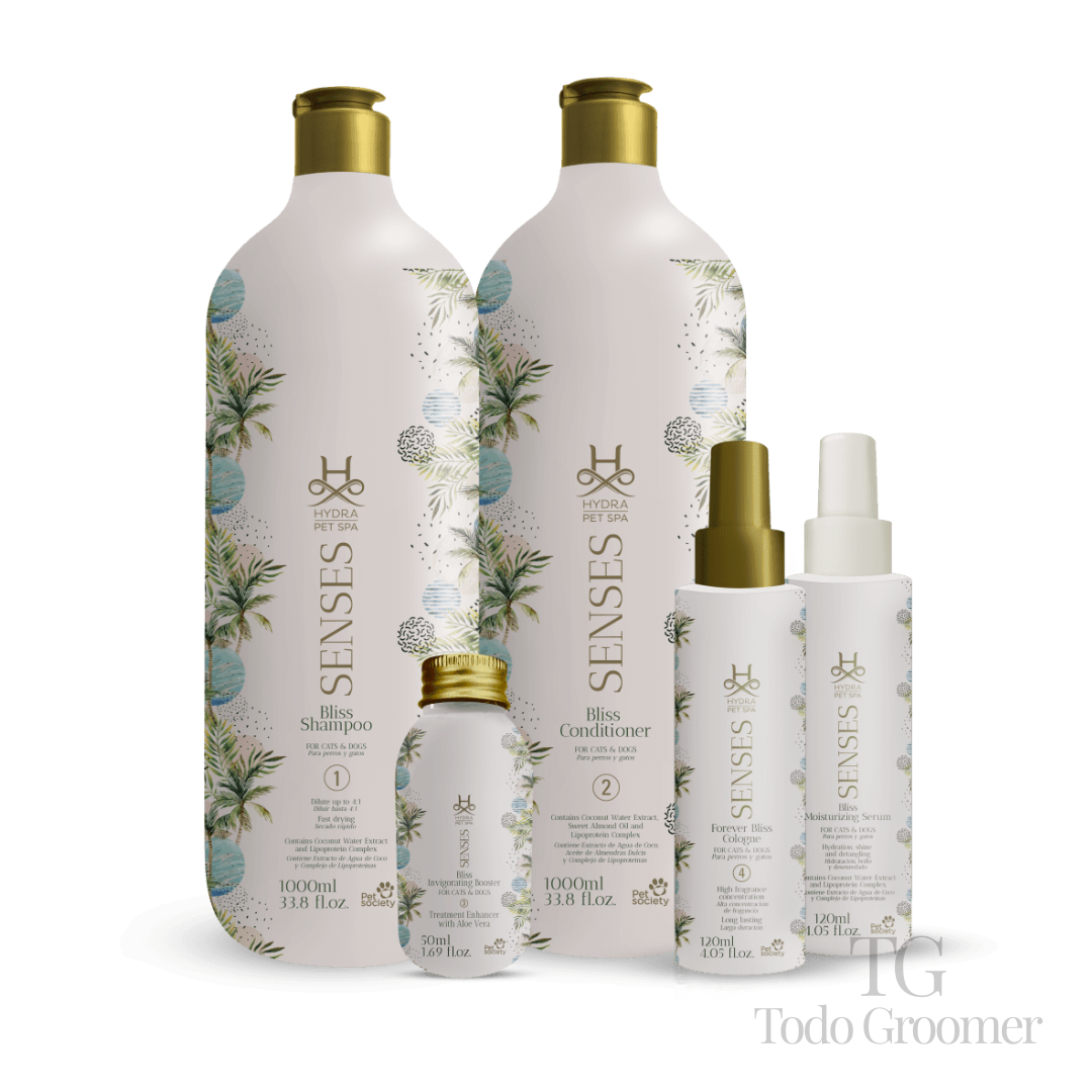 La colección Hydra Pet Spa está revolucionando el concepto de servicios profesionales para los salones de belleza en todo el mundo. Estimula los sentidos con un brillo visiblemente mejorado, una suavidad al tacto y una fragancia duradera que captura la esencia de la naturaleza misma. Nuestra segunda colección Bliss proporciona un encuentro con lo mejor del verano, aportando efectos sorprendentes en la recuperación, hidratación y frescor para la piel y el pelaje de las mascota.