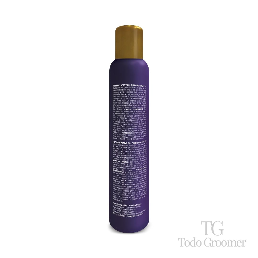 Spray para el acabado de mantos, su fórmula contiene aceite de argán y queratina, proporcionando suavidad, eliminación de la electricidad estática y un brillo increíble.