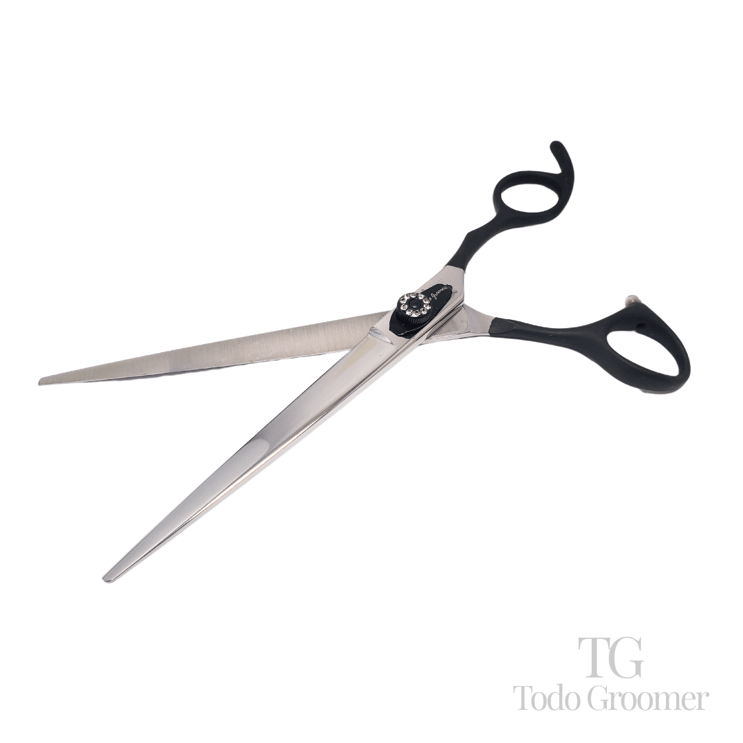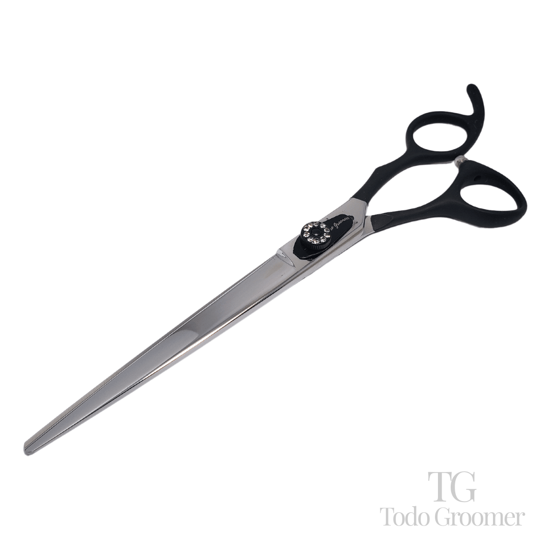 Introducimos la Tijera Recta Profesional Seimitsu – Kuro 440C. Esta tijera recta es extremadamente versátil y ergonómica, diseñada para ofrecer un rendimiento excepcional en diversos trabajos de peluquería canina.
