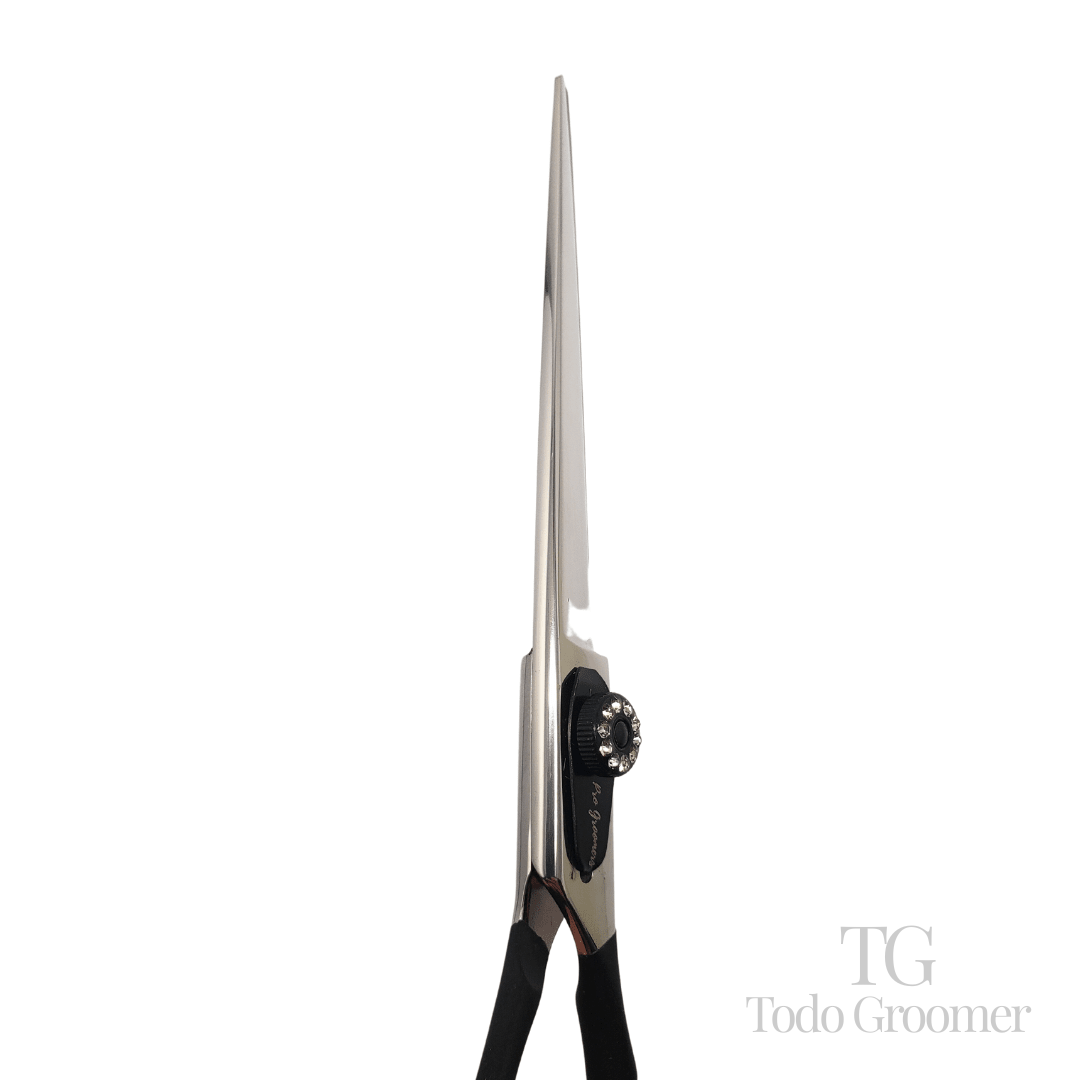 - Filo de navaja: El filo de navaja de esta tijera permite desfilar y texturizar el pelaje con precisión. Su filo afilado garantiza un deslizamiento suave y fácil a través del pelaje, brindando resultados impecables.